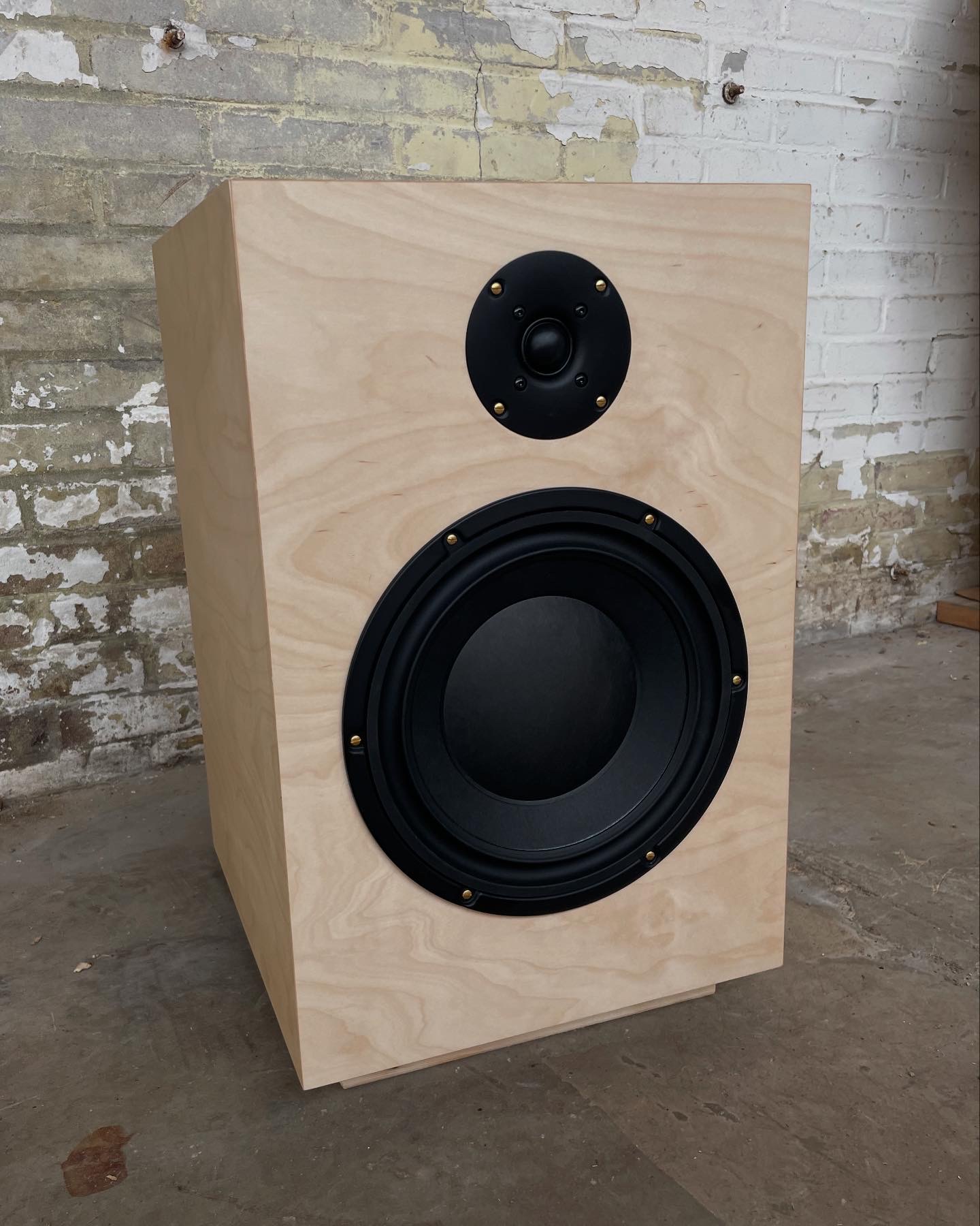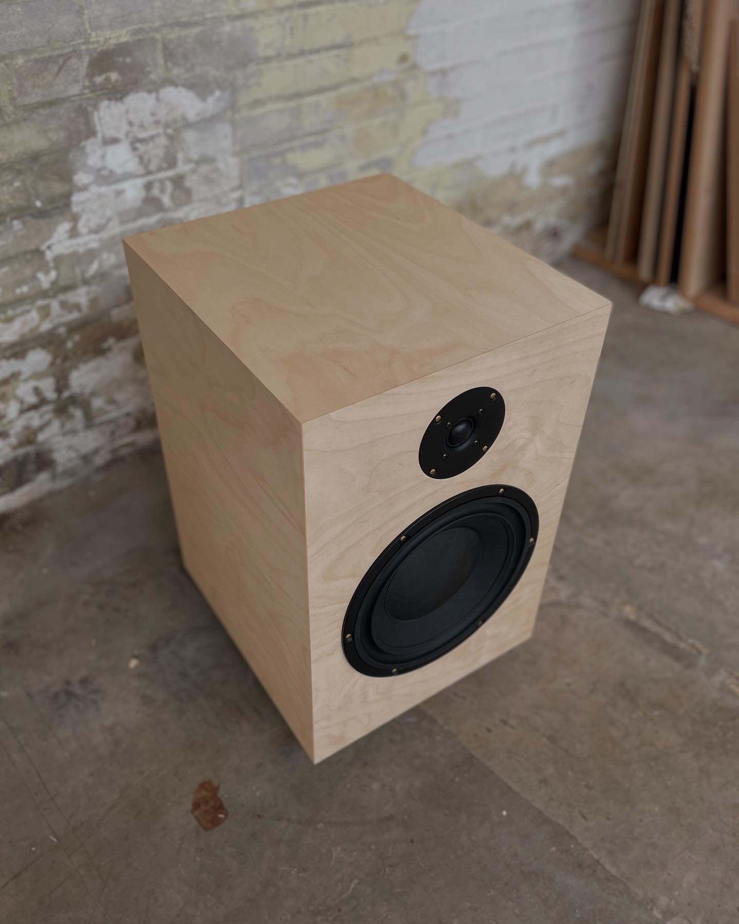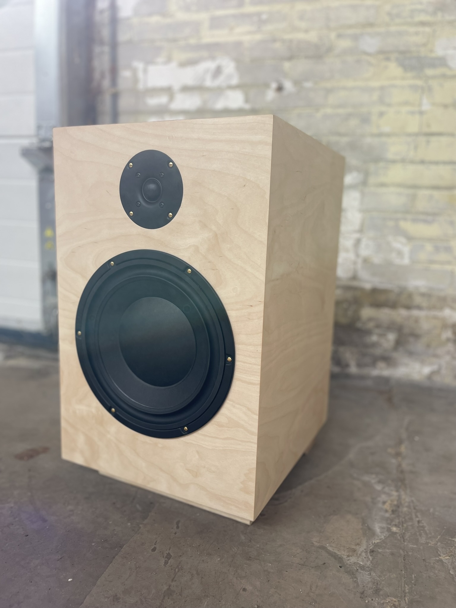 Hiervoor heb ik 22 mm dik MDF gelamineerd met een licht berken fineer. De oude messing schroefjes vormen een leuk contrast met de moderne strakke look van de speaker. Door de afwerking met Rubio Monocoat Oil Plus 2C wordt de houtnerf mooi geaccentueerd terwijl het een goede bescherming biedt.